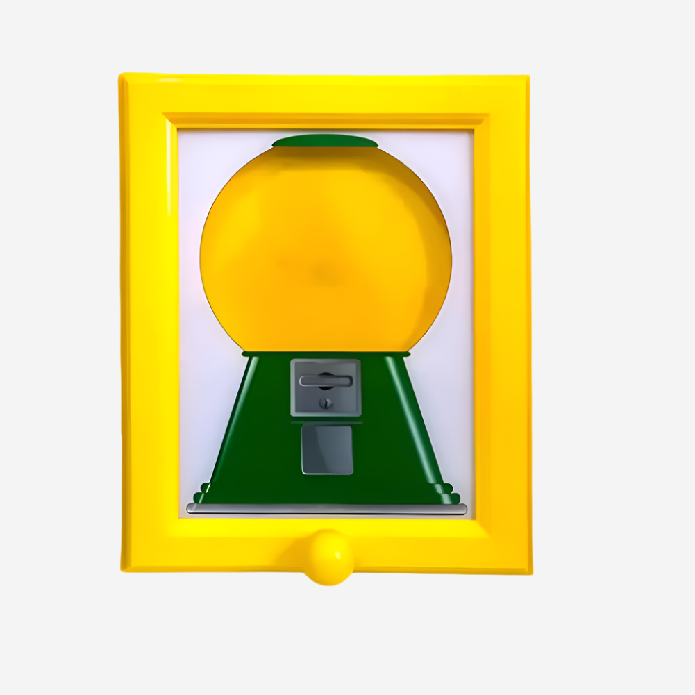 Add a pop of playful color and retro charm to your space with The Candy Dispenser! Designed to look like a classic gumball machine, this unique piece doubles as wall art and a candy dispenser, instantly catching the eye with its vivid yellow frame and realistic 3D details. Turn your wall into a conversation starter—order The Candy Dispenser and bring a touch of nostalgia and fun to any room!
